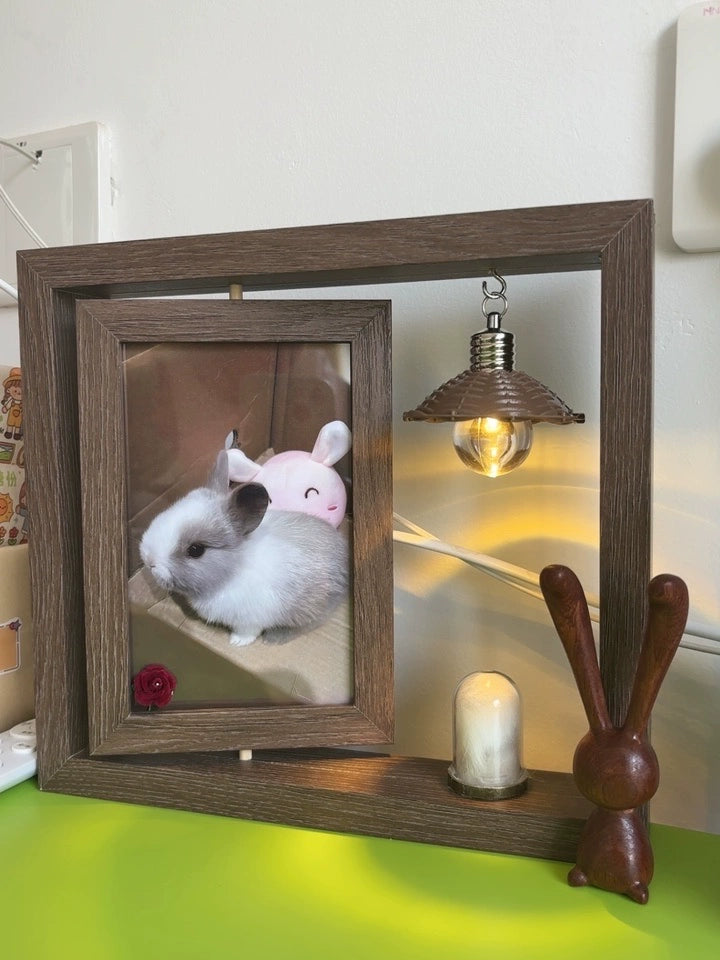 Handcrafted Memorial Frame with Light · 6"/7" · Brown or Wood Grain